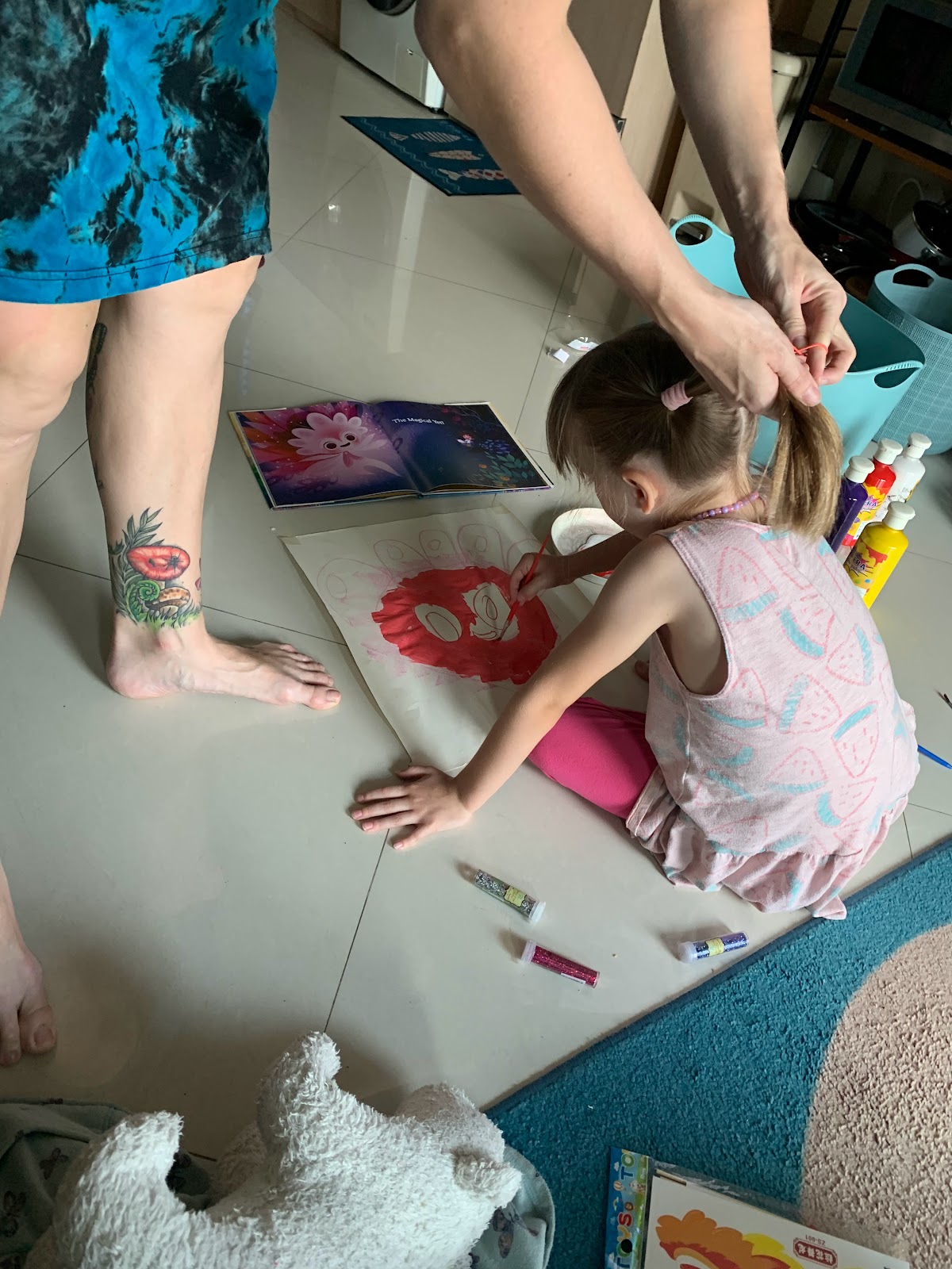 We also did some painting and just had a fun weekend. The pool party Sunday was fun, but it kind of took it out of all of us. We got home about 16:30 and we all just needed to NOT. Kiddo just wanted to watch a show and be alone in her room and have some time to chill. J and I did the same and we all just chilled.
